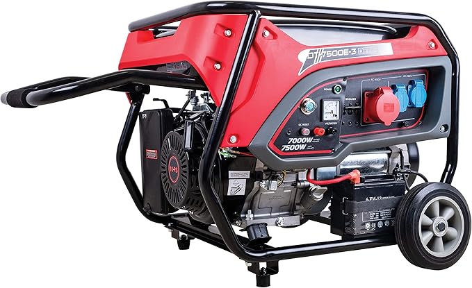 - ⚡️ Generatore di corrente affidabile da 18 CV e potenza massima di 7,5 kW grazie ad un robusto motore a 4 tempi. Il generatore è alimentato a benzina commerciale e dispone di un pratico avviamento elettrico grazie alla batteria in dotazione. È possibile anche un avvio manuale con cordino.