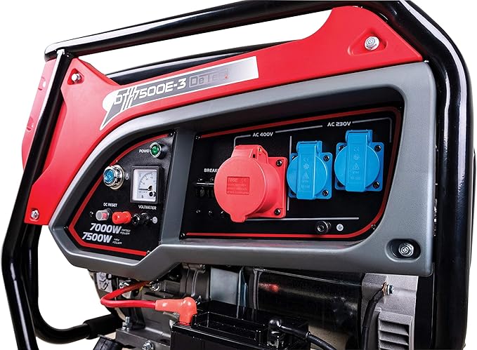 - ⚡️ 2 prese Schuko (230 V/1400 Watt) e 1 presa CEE (400 V/7000 Watt). Il convertitore di tensione automatico (AVR) garantisce una potenza di uscita stabile.